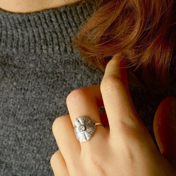 Cette bague fleurie et lumineuse ne passe pas inaperçue. Pour sublimer vos looks, le nénuphar se pare d’un zircon qui lui confère tout son éclat. Cet ornement étincelant renvoie la lumière et fait de cette bague nénuphar un véritable joyau. Vous attirerez tous les regards !