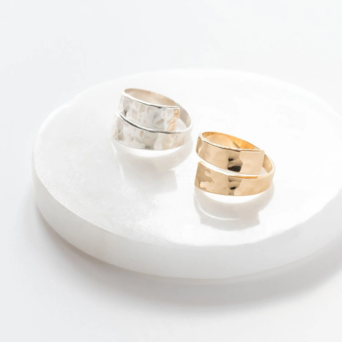On aime cette bague martelé pour ses lignes épurées, modernes et chic. Ce cadeau romantique par excellence joue sur un joli mariage de styles contemporain et simpliste pour séduire son heureuse destinataire.