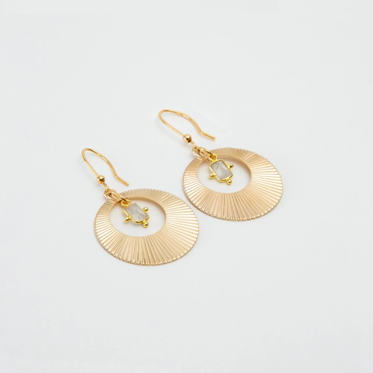 Lumineuses et colorées, nos Boucles d’oreilles Eclipse et Pierre Amulette font partie de la gamme des nouveautés plaqué Or !