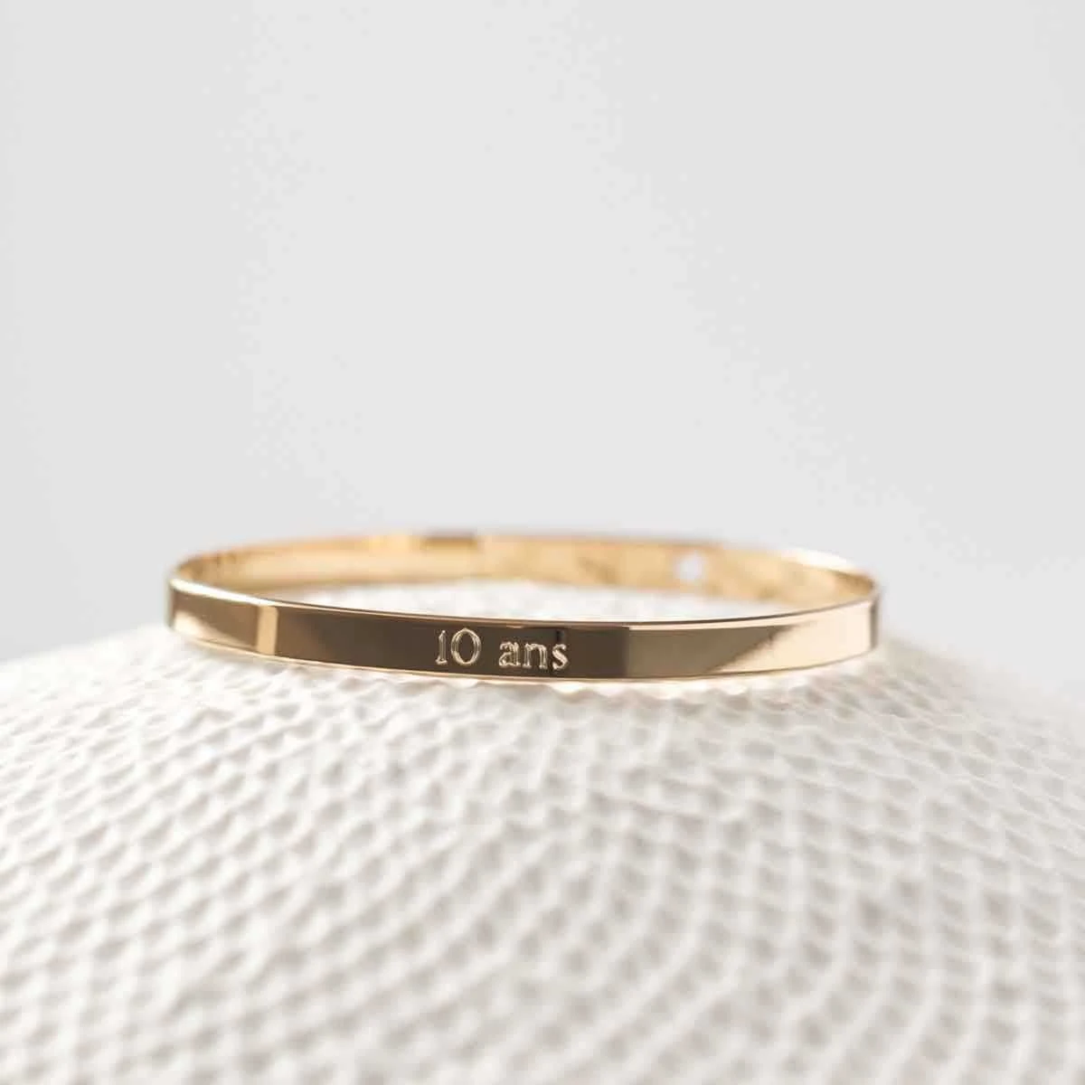 Le bracelet jonc personnalisé trône parmi les bijoux femme les plus intemporels. Son design épuré et raffiné fait de lui l’accessoire indispensable pour parfaire une tenue ! Simplement beau, ce bijou saura vous sublimer.