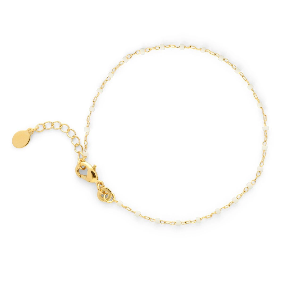Combinant finesse et élégance, le Bracelet Mahos se compose d’une jolie chaîne dorée et de superbes petites perles de Miyuki placées à intervalles réguliers.