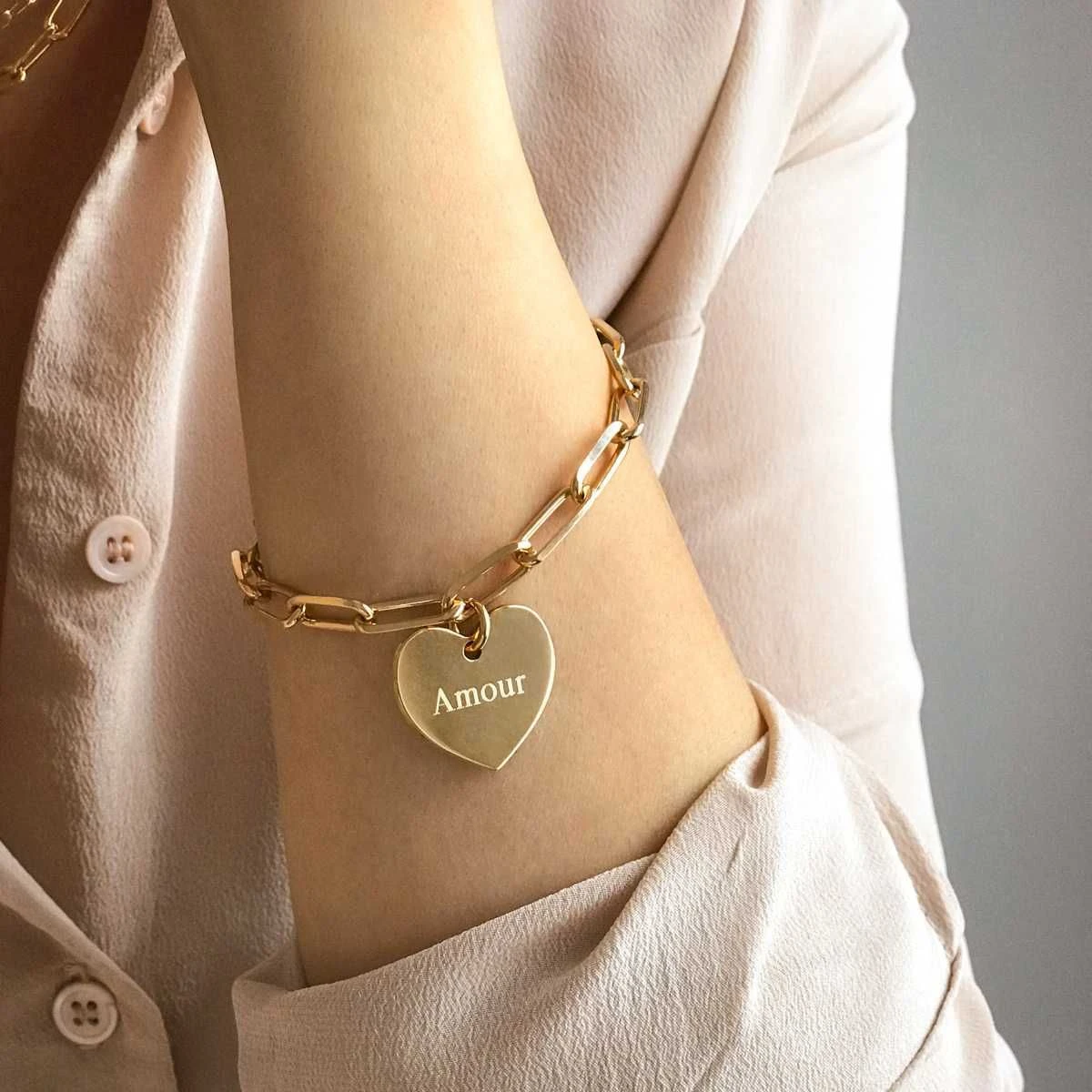 Avec ce bracelet maillon ovale entièrement personnalisable, vous composerez votre bijou idéal ou vous surprendrez une femme qui vous est chère avec beaucoup de tendresse. Soyez imaginatif et sincère, vous offrirez le plus symbolique et le plus beau des cadeaux !