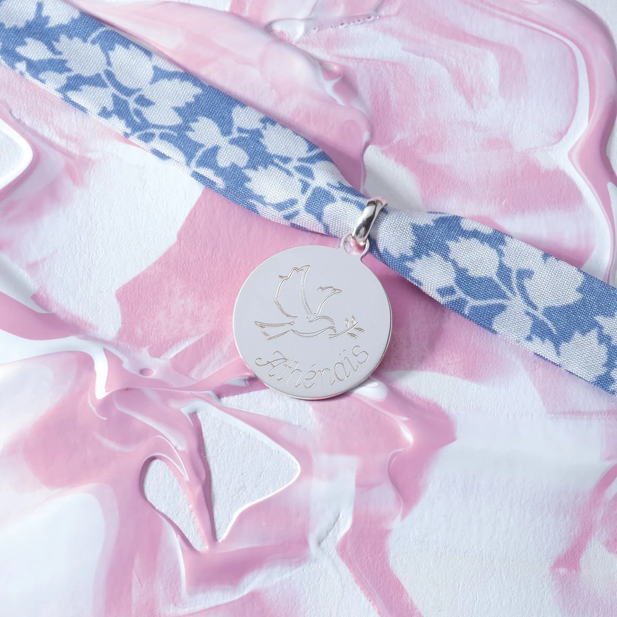 Atelier de famille célèbre toutes les étapes importantes d’une vie. Le bracelet médaille en plaqué or Colombe sera de toutes les fêtes. Anniversaire, cérémonie religieuse ou simple envie de faire plaisir, votre enfant sera ravi de porter un bijou personnalisé unique qui lui ressemble.