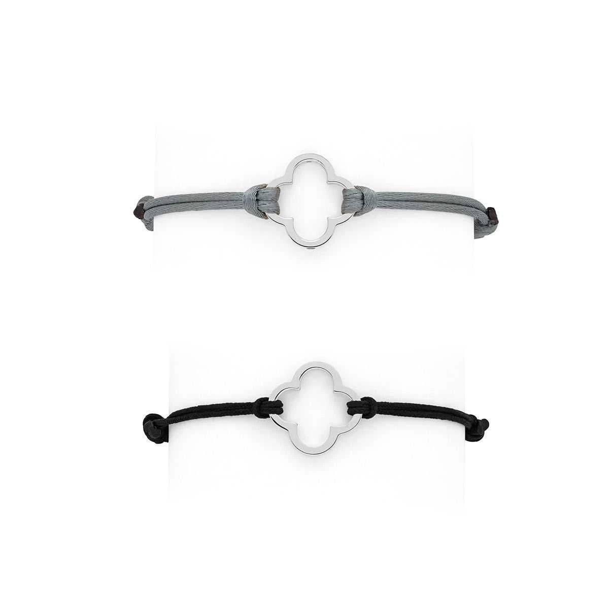 Le bracelet trèfle ajouré sur coton fin est un bijou très féminin.