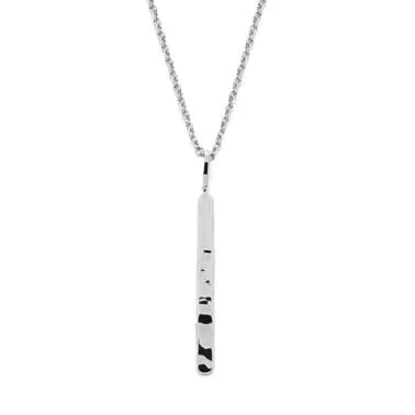 On adore les lignes subtilement dessinées de la barrette martelée sur chaîne en arge,nt massif qui est personnalisable au verso.