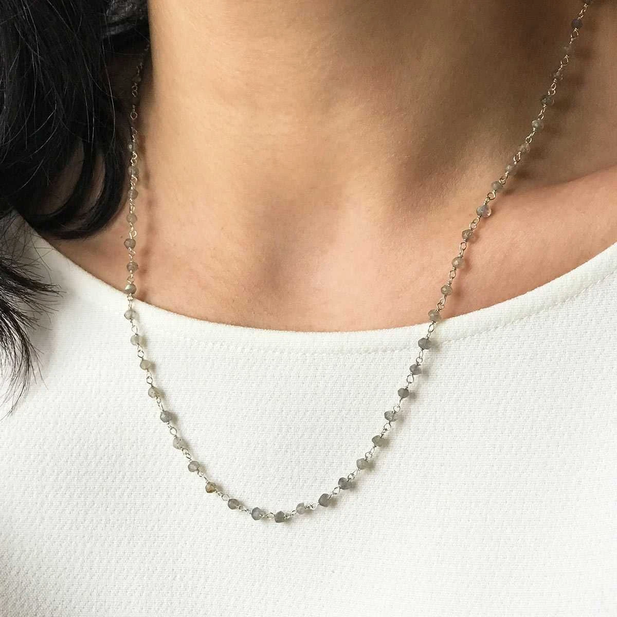 A porter seule ou agrémentée d’une mini breloque, cette chaîne est composée de moyennes pierres semi-précieuses véritables montées sur argent massif.