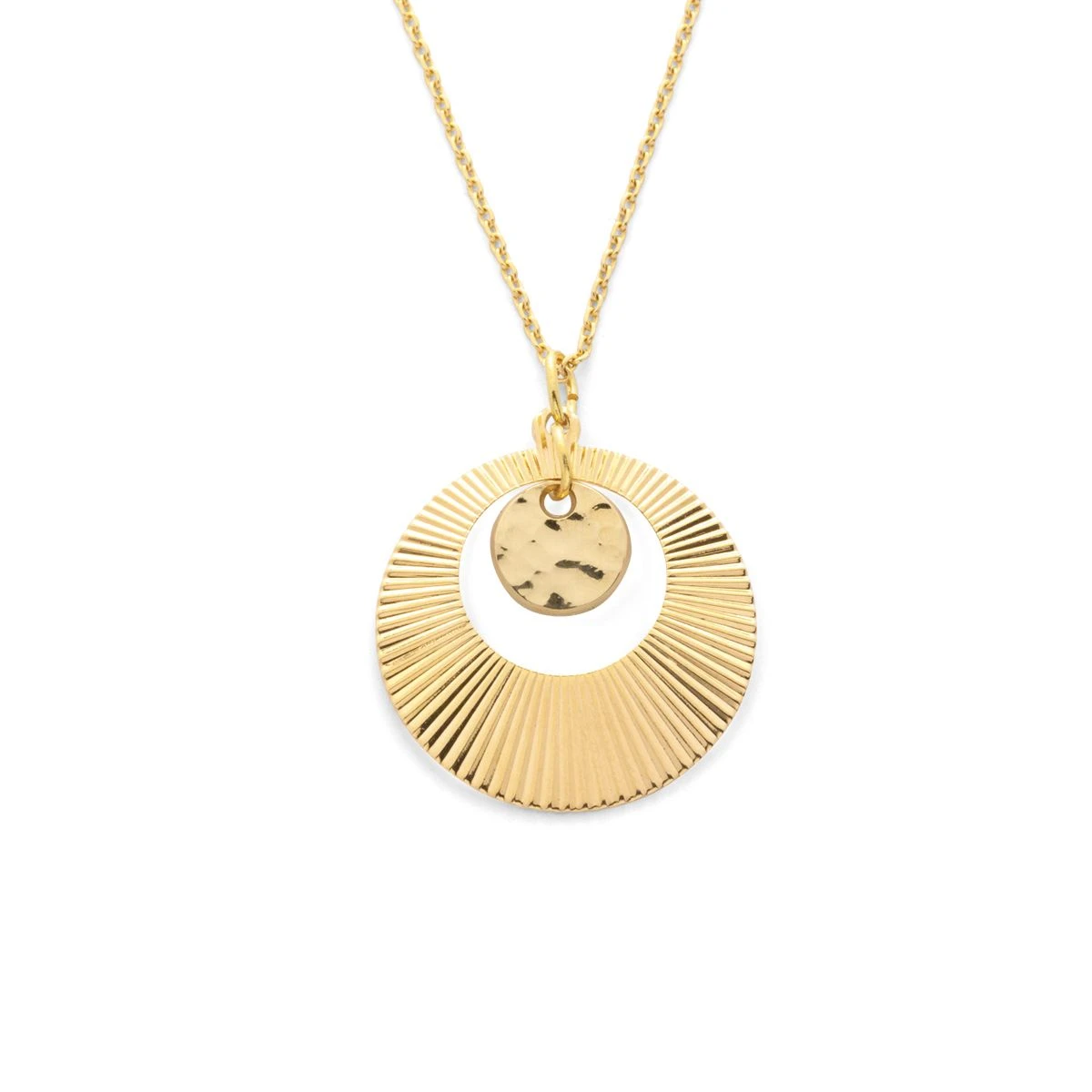 Ce bijou femme tendance et intemporel est composé d’une chaîne maille forçat, d’un Rond Eclipse et d’un Mini rond martelé.