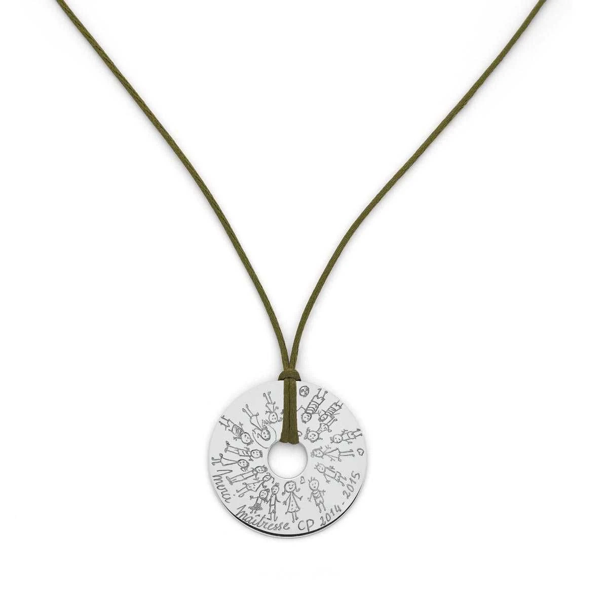 Collier Grande Médaille Colombe Et Prénom Sur Cordon Argent Massif – 2,7cm