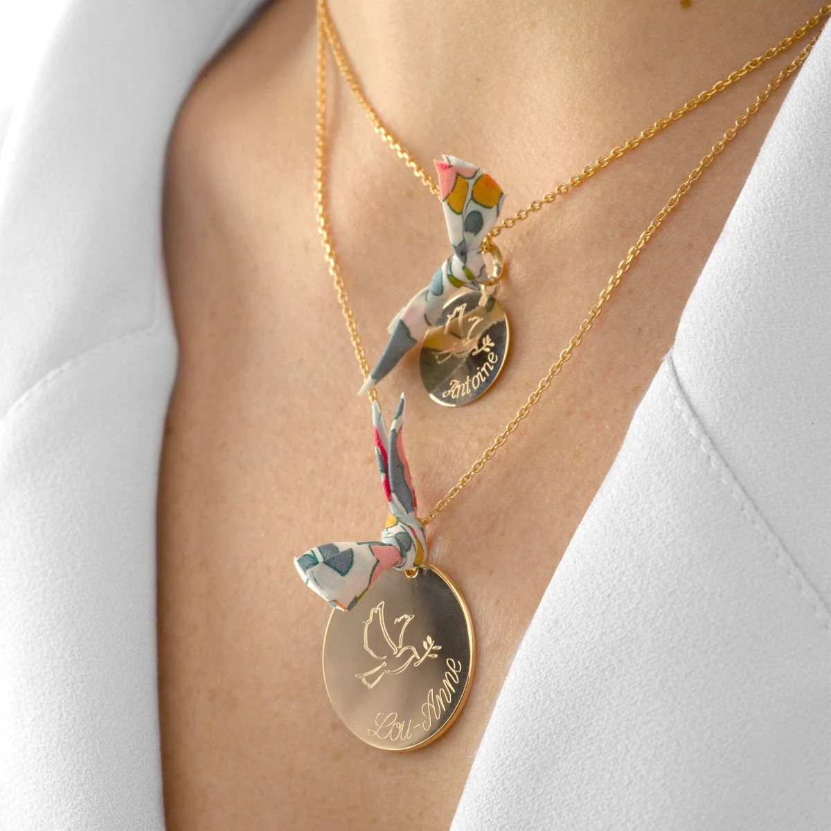 Pour ajouter une petite touche de fantaisie, Atelier de Famille vous propose ce joli nœud Liberty. Et pour donner plus de sens à ce cadeau, une gravure joaillier viendra compléter les deux faces du pendentif. Soigneusement personnalisé, ce bijou femme deviendra unique et témoignera toute votre affection.