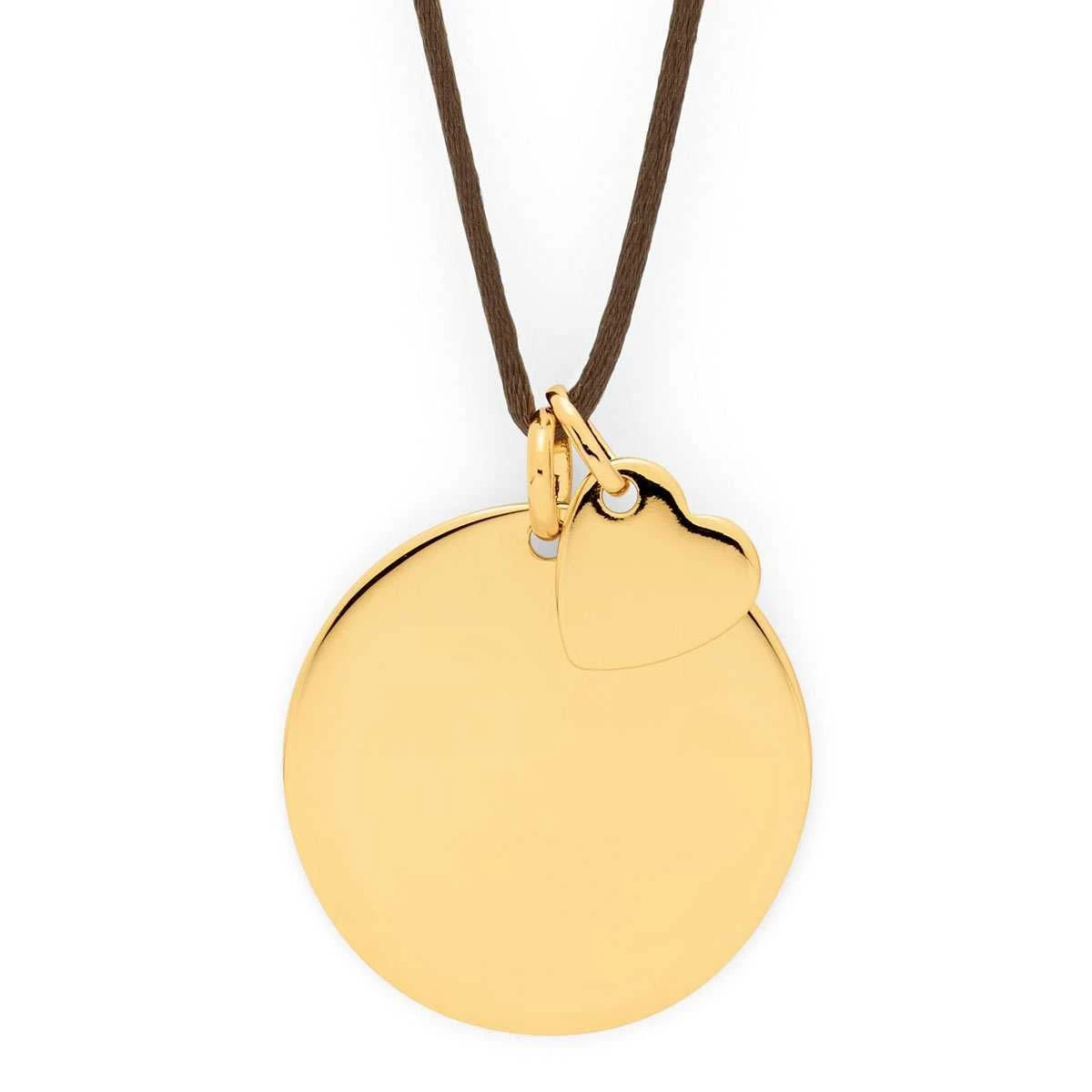 Collier Petite Médaille Colombe Sur Lien Satin Plaqué Or -1.7cm
