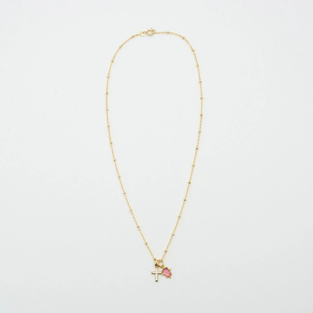 - Matière : Plaqué Or 3 microns et pierres fines ; (Cornaline : tête d’éléphant, Onyx : oeil, Oxyde de zirconium : croix scintillante)