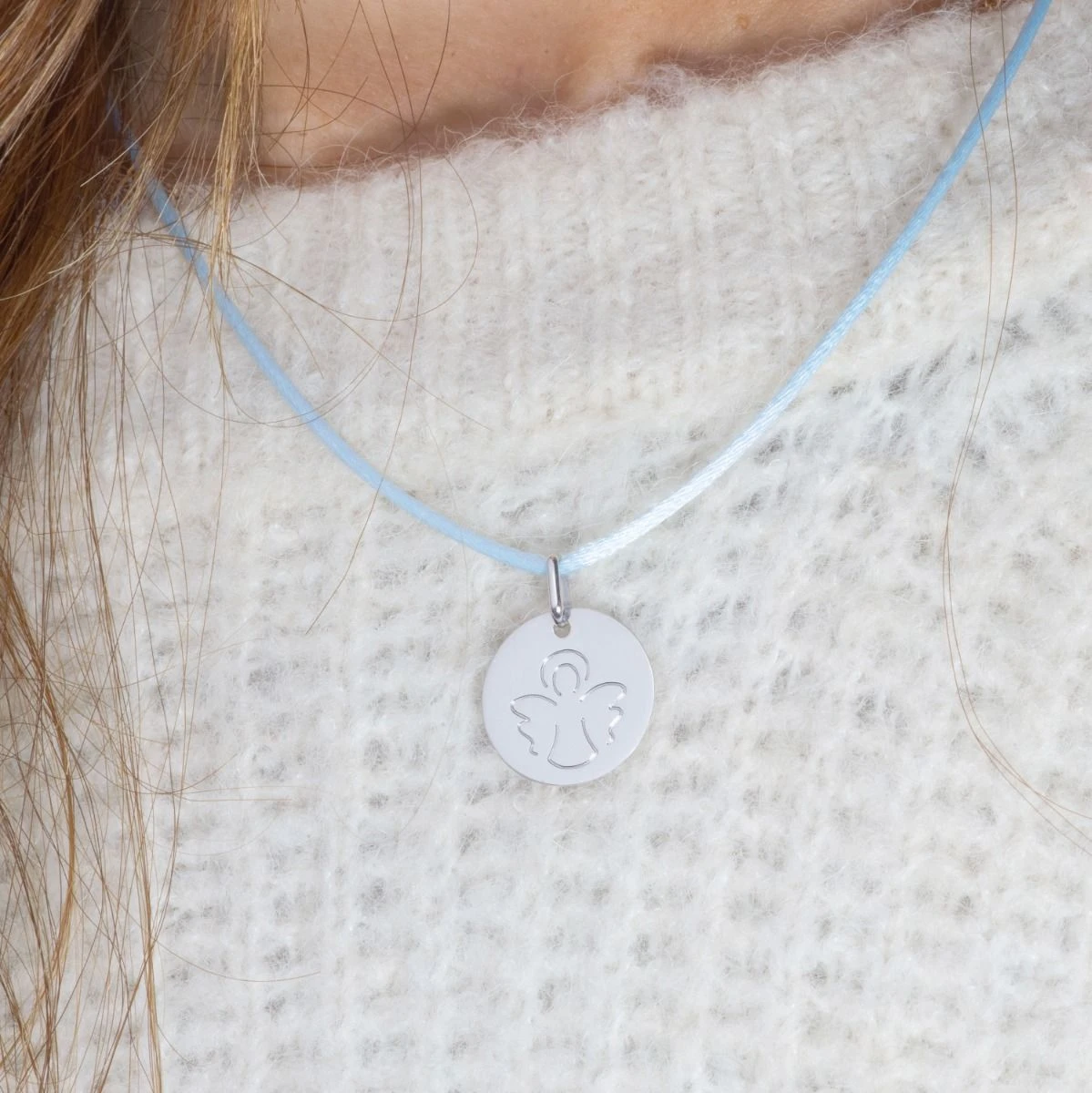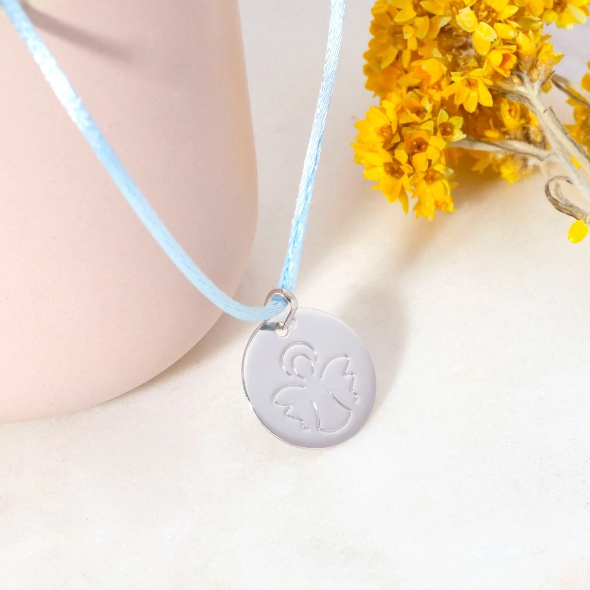 Ce collier médaille ange dessinée en Argent Massif sur lien satin est une idée-cadeau tout indiquée pour célébrer une naissance ou une communion par exemple. Cette médaille peut-être personnalisée avec le prénom de l’enfant.