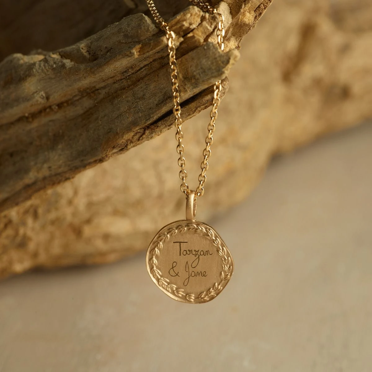 Collier Médaille Irrégulière Frappée Sur Chaîne Forçat Plaqué Or