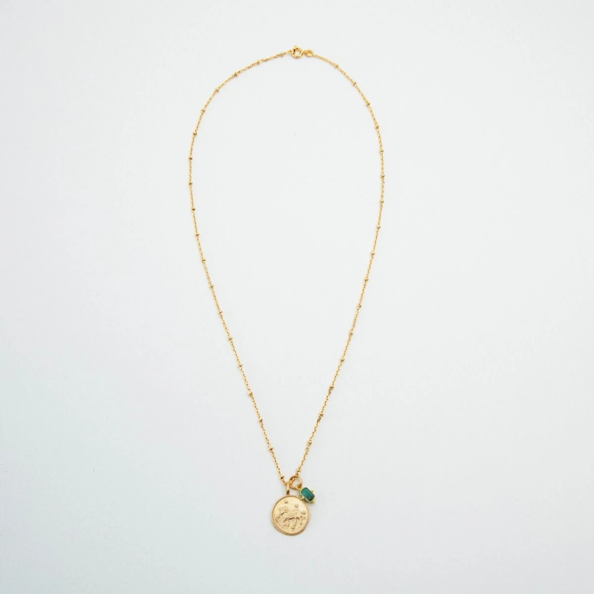 En plaqué or 3 microns, le Collier médaille signe du zodique et pierre amulette se classe parmi nos bijoux personnalisables les plus prisés.