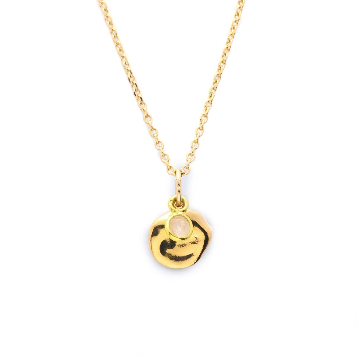 Un collier composé d’une pépite, en plaqué Or 3 microns, aux contours irréguliers, que vous pourrez personnaliser en choisissant la gravure ainsi que la couleur de la pierre fine.