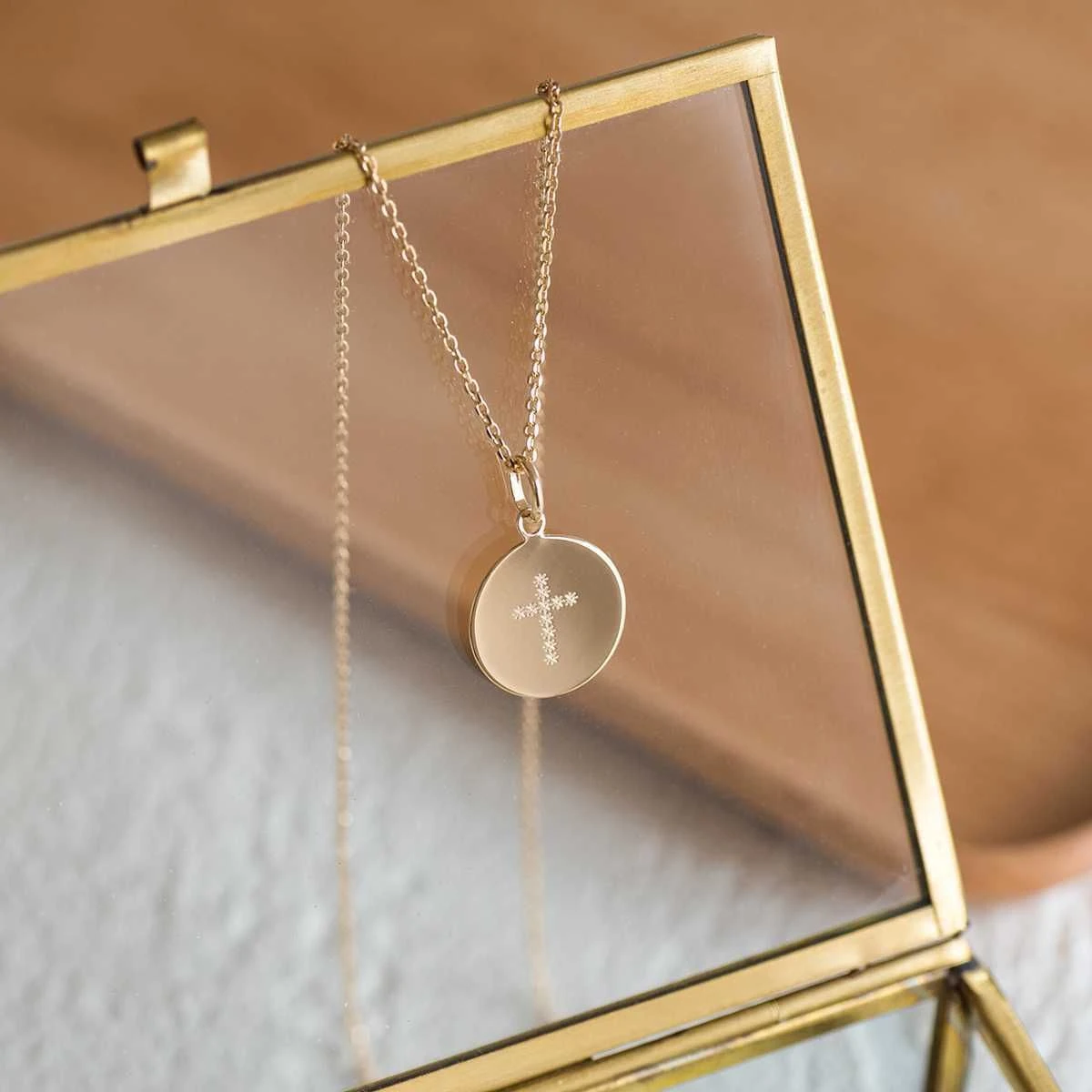 Légèreté, finesse et raffinement, il n’en fallait pas plus pour tomber sous le charme du collier petite médaille croix étoilée.