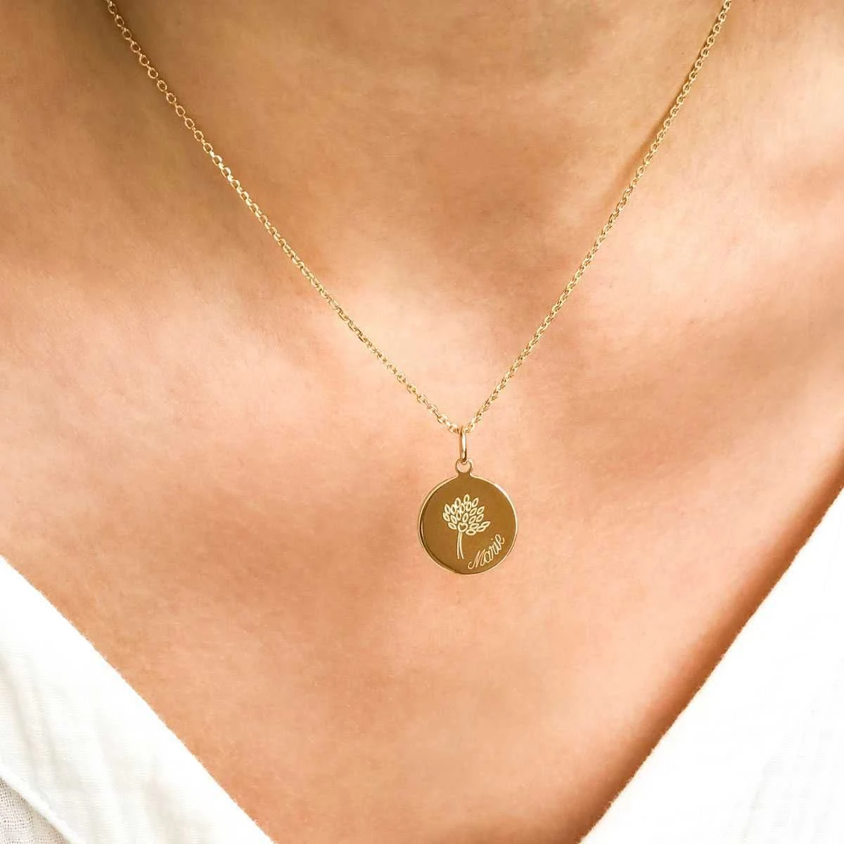 Légèreté, finesse et raffinement, il n’en fallait pas plus pour tomber sous le charme du collier petite médaille Arbre de famille.