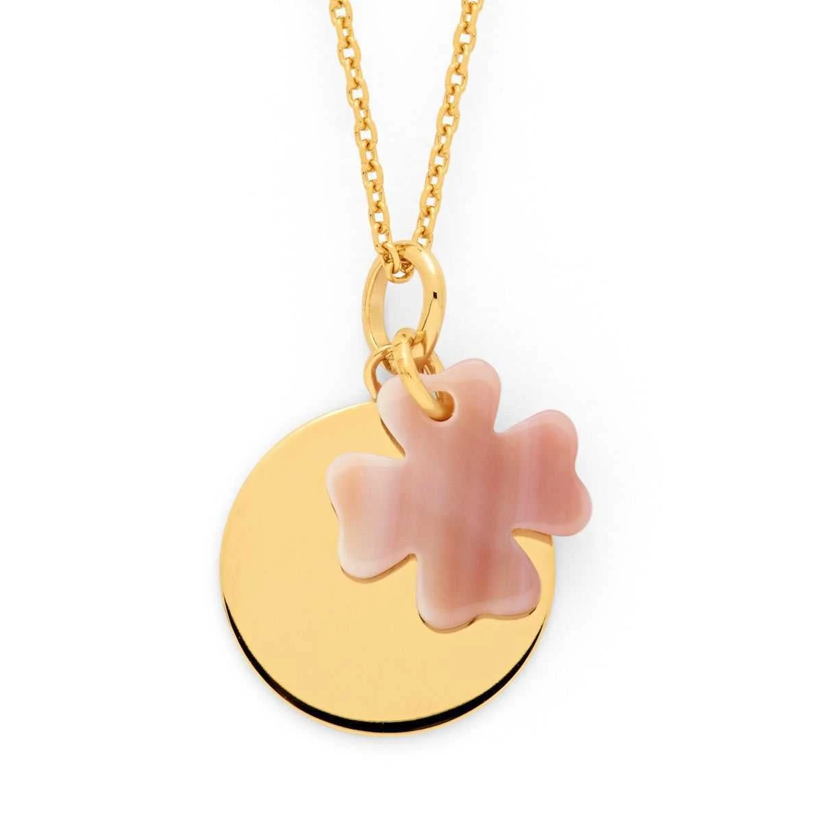 Entre élégance et raffinement reflets irisés et aspect lisse, le Collier petite médaille plate et trèfle en nacre fine qui est en plus personnalisable , dispose de tous les atouts pour séduire son heureuse destinataire.