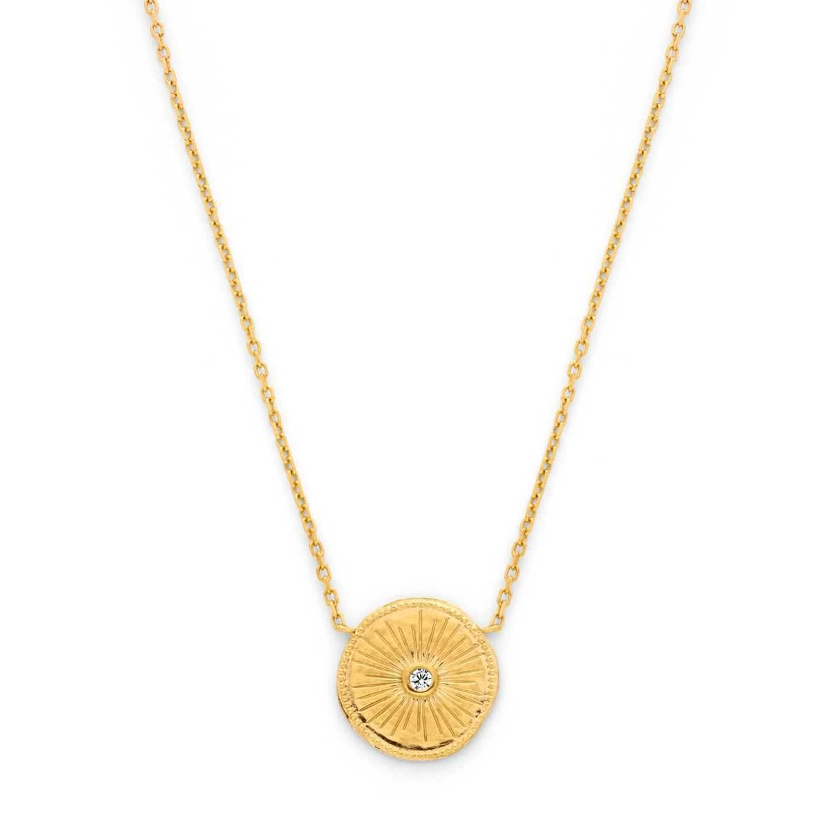 Brillez où que vous alliez grâce au collier soleil sur chaîne plaqué or. Ses lignes subtilement dessinées attirent le regard sur son superbe soleil orné d’un zyrconium blanc au centre.