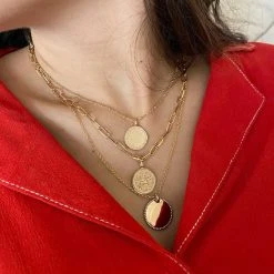 Collier Médaille Martelée Et Mini Rond Plaqué Or – Gravure Prénom Personnalisée