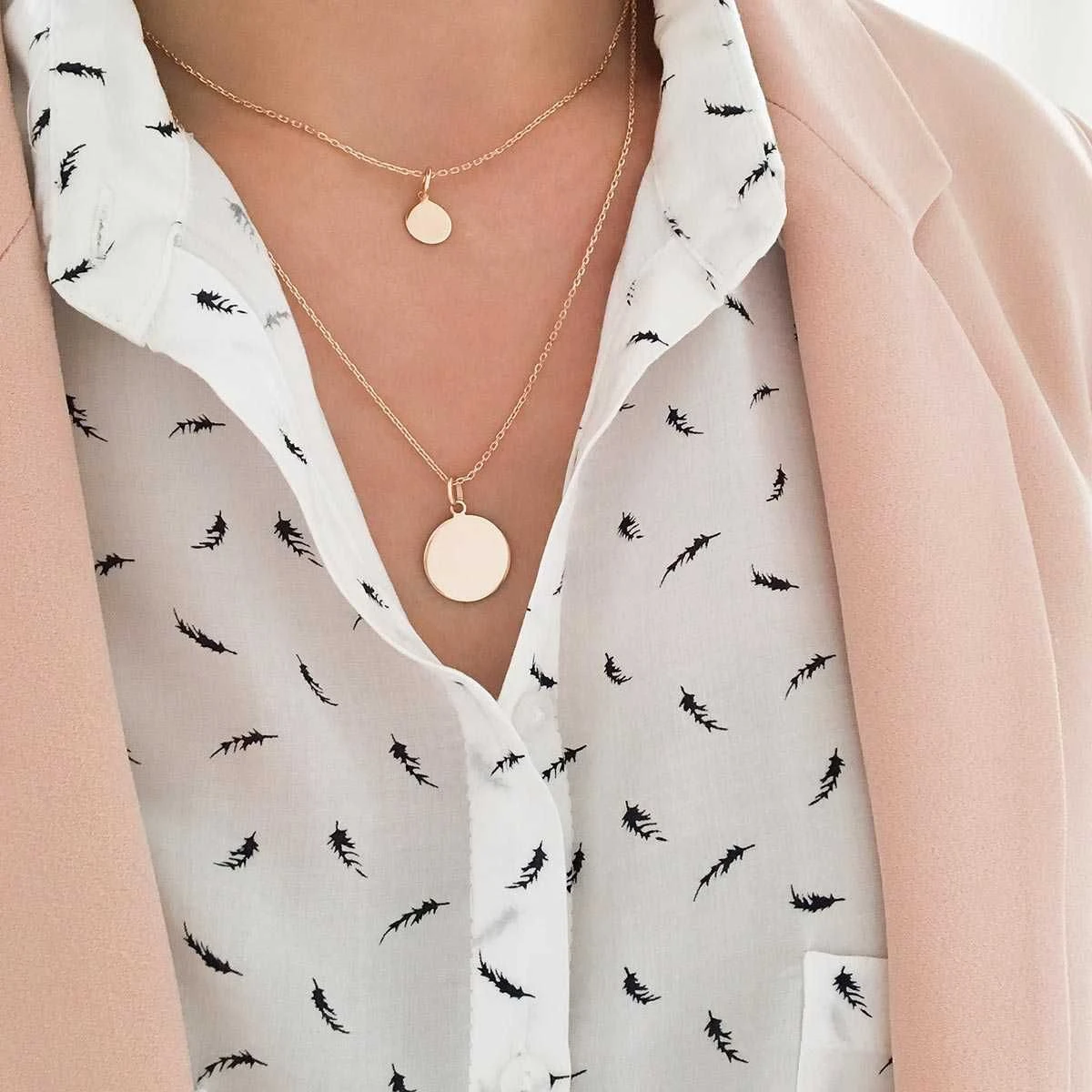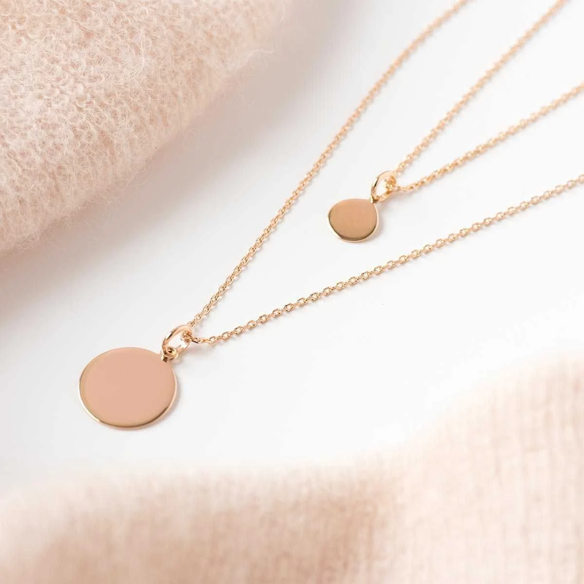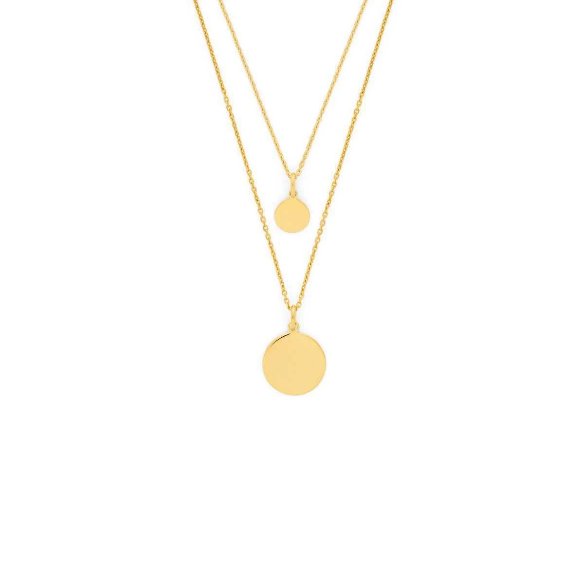 Les deux colliers sont indépendants : Un premier collier composé d’une petite médaille de 1.1 cm montée sur une chaine maille forçat de 40 cm et un deuxième collier composé d’une médaille de 1.7 cm montée sur une chaine maille forçat de 50 cm.