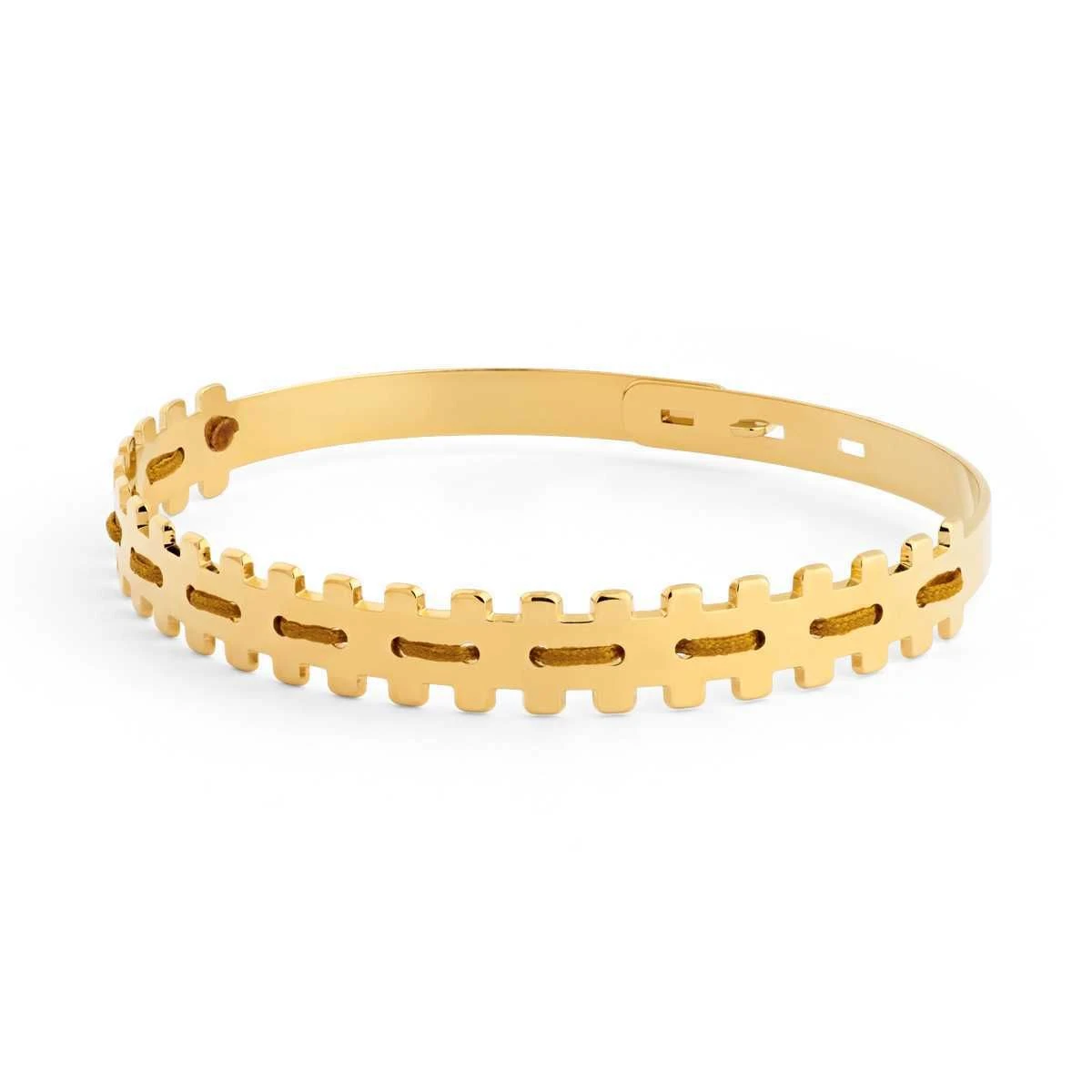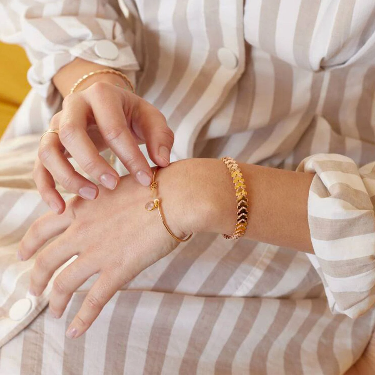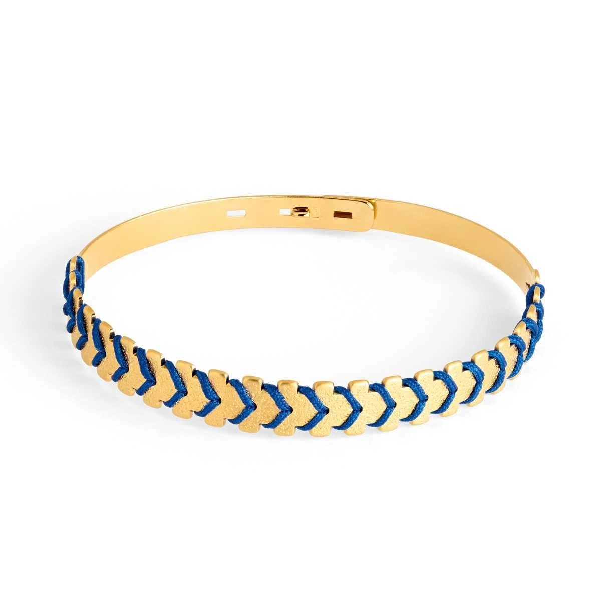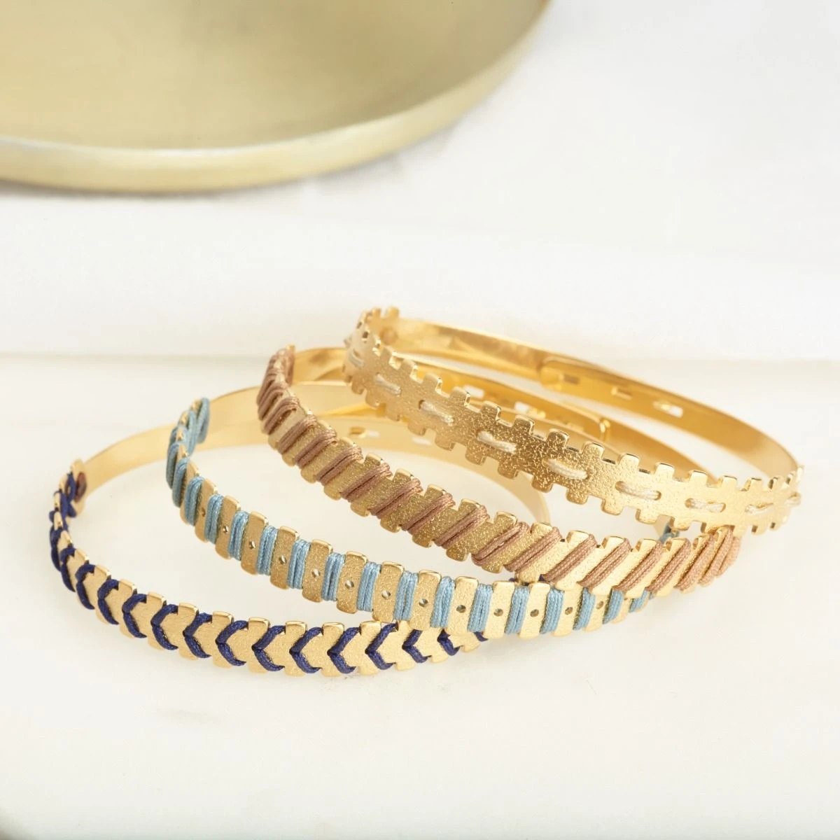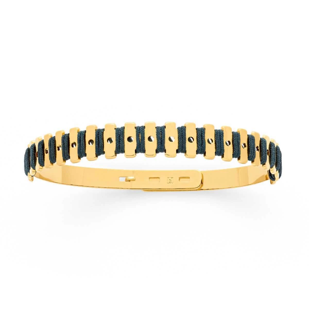 Ce jonc en plaqué Or 3 microns est tissé à la main dans nos ateliers à l’aide d’un lien nylon & soie. Sa fermeture 3 positions permet un ajustement parfait à tous les poignets.