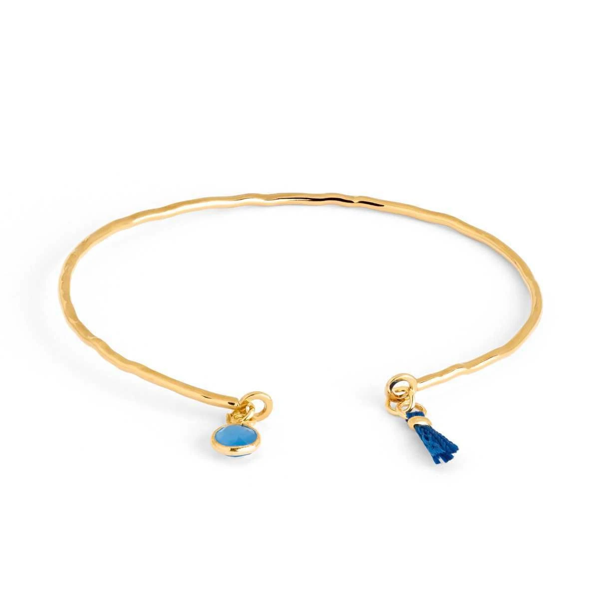 En plaqué Or, ce Jonc fin martelé orné d’une petite pierre sertie et d’un mini pompon vous accompagnera avec finesse et élégance au quotidien.