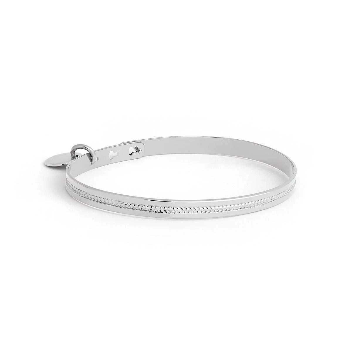 Subtile combinaison d’une ligne de perle en Argent massif et d’une mini breloque, le Jonc ruban perles à personnaliser est l’accessoire parfait pour apporter délicatement une touche de glamour et de raffinement à une tenue.