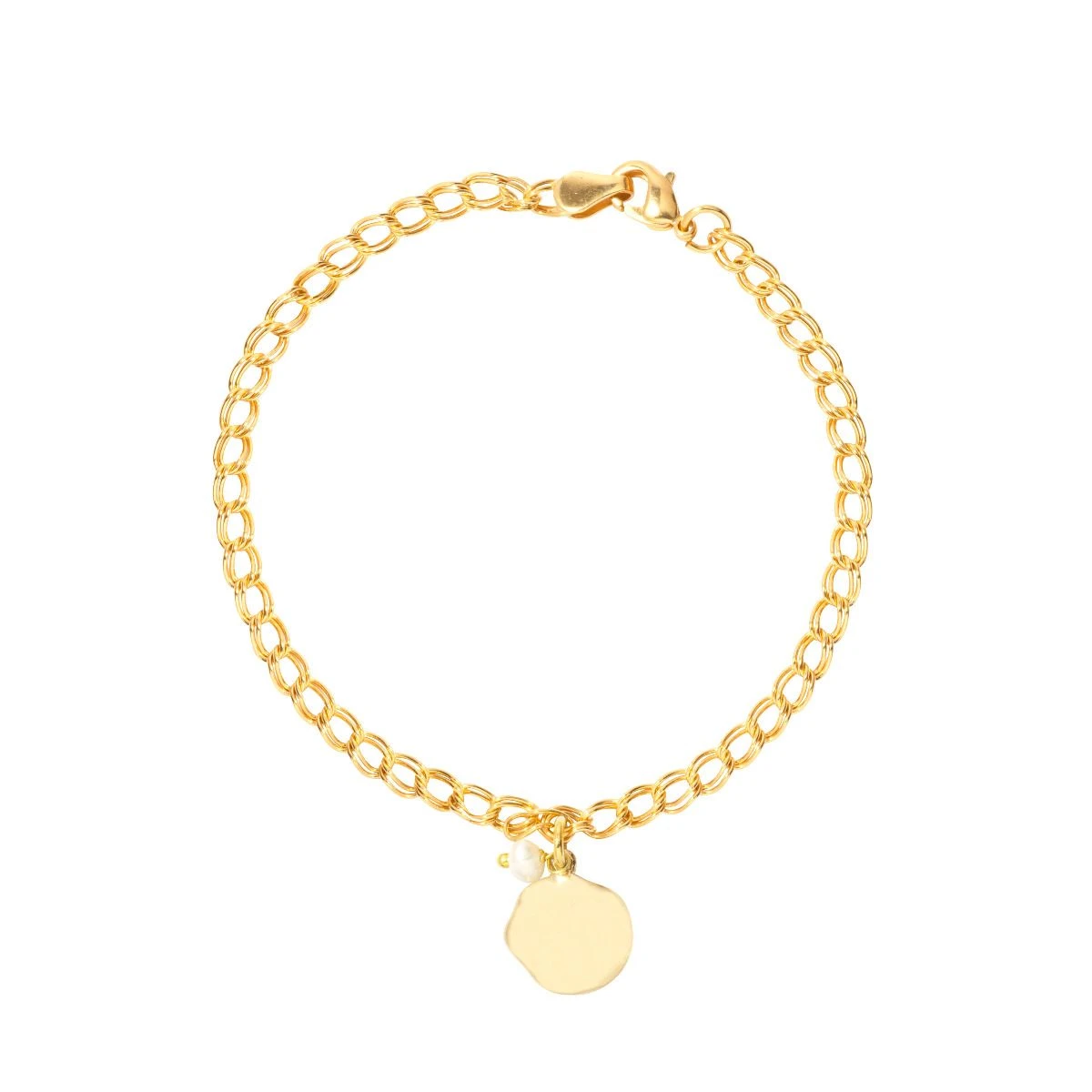 Ce bracelet Pépite en plaqué or trône parmi les plus belles pièces de notre collection «Nacre». Sa chaîne élégante se compose de maillons doubles et se pare de deux jolis ornements. Comment résister au charme d’une mini médaille éclatante de brillance ? En effet, sa surface légèrement martelée décuple la luminosité du métal précieux. Et le raffinement n’a pas fini d’inonder ce bracelet qui surmonte sa pépite en plaqué or d’une petite nacre blanche. Symbole de pureté et de douceur, ce trésor offre une dimension symbolique aux bijoux. Chez les grecs, la nacre symbolise l’amour tandis qu’elle évoque l’immortalité en Chine.