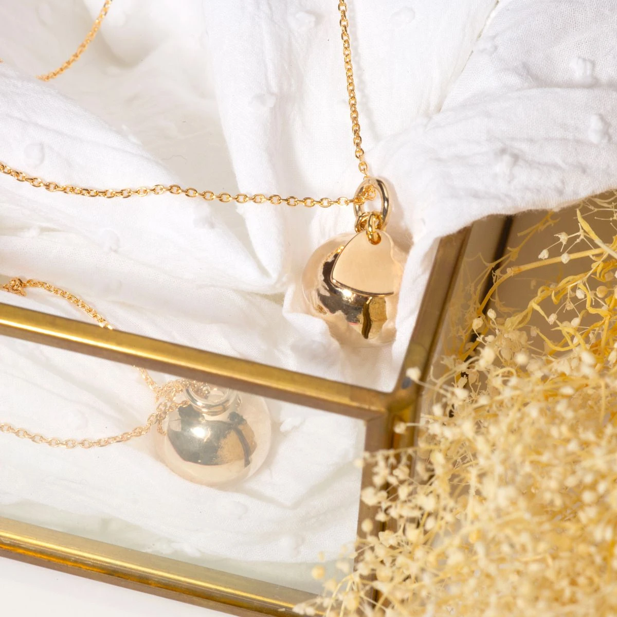 Cet élégant bola de grossesse en plaqué or 3 microns vous accompagnera : vous et votre bébé tout au long de votre grossesse.