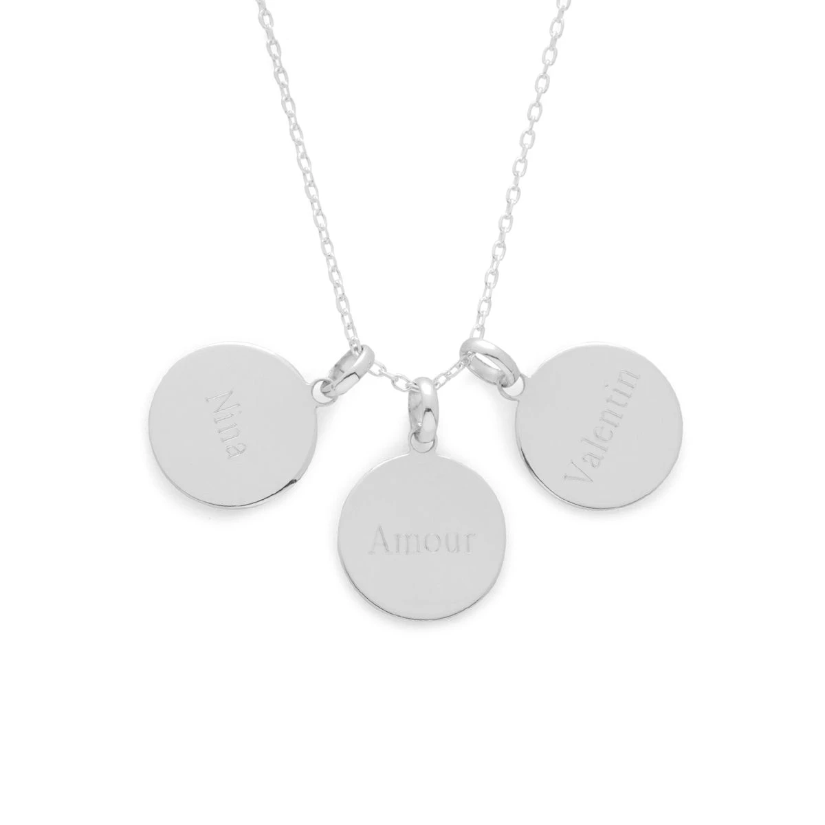 Collier Grande Médaille Colombe Et Prénom Sur Cordon Argent Massif – 2,7cm