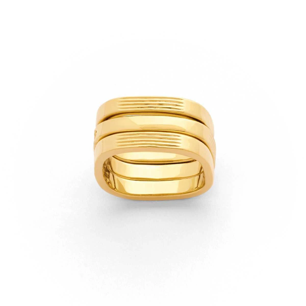 Ce trio exclusif composé de 3 bagues n°4 est la bonne idée pour exprimer votre originalité. Chacune de ces bagues en plaqué or propose 4 faces différentes : lisse, martelé, perlé ou strié. Vous alternerez les faces en fonction de vos humeurs et de vos envies comme si chaque jour, vous changiez de bagues.