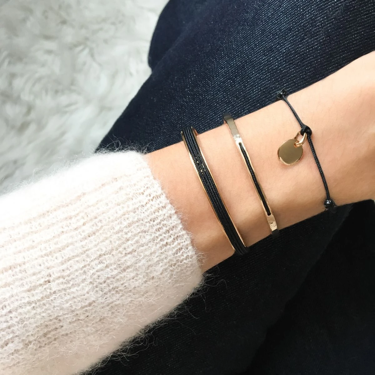 Ce trio est composé d’un jonc galon, d’un jonc droit et fil et d’un mini rond bombé sur lien.